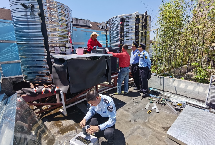 数据显示,在酒店热水设备未开启的情况下,噪声源周边取样点白天时段测得的数值在60分贝以下,未超标。 陈玺撼摄