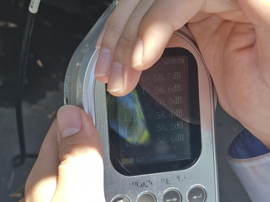 居民楼外采样点获取的噪声数值在52分贝左右,也未超标。 陈玺撼摄