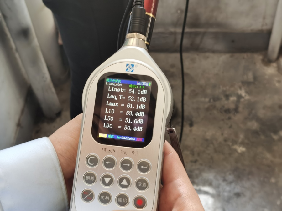 徐汇区环境监测站工作人员依照规范,选择了两个采样点对噪声进行白天和夜间两个时段的检测,结果,噪声源边界外1米南、距东边界4米检测点的夜间值为56分贝,判定为超标。